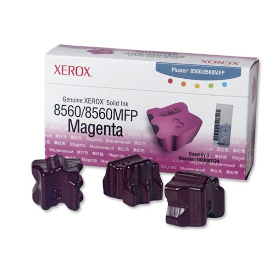 Συσκευασία αυθεντικού στέρεου μελανιού COLORSTIX της XEROX που περιέχει 3 δοχεία ιώδους μελανιού. Το Solid Ink είναι η νέα τεχνολογία της XEROX για laser εκτυπωτές που παρέχουν πιο ζωηρά χρώματα και μεγαλύτερο αριθμό σελίδων. Τα αναλώσιμα XEROX προσφέρουν