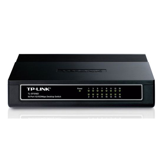 TL-SF1016D Εthernet switch από την TP-Link, για επέκταση του ασύρματου δικτύου. Είναι εξοπλισμένο με 16 θύρες, οι οποίες υποστηρίζουν auto-MDI/MDIX, ώστε να μην απαιτείται η χρήση καλωδίου crossover ή θυρών Uplink. Μπορεί να επεξεργαστεί δεδομένα σε υψηλές ταχύτητες έως 100Mbps, χάρη στο full duplex mode.