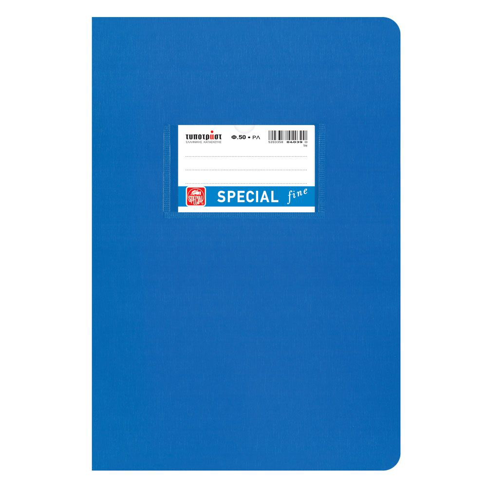 Κλασικό Μπλε Τετράδιο Fine Στρογγυλεµένες γωνίες • Δεν φθείρονται µε την χρήση. • Δεν τσαλακώνονται στη τσάντα. • Δεν “τραυµατίζονται” τα παιδιά από τις γωνίες. Εξώφυλλο • Αδιάβροχο • Ανθεκτικό • Δεν τσαλακώνεται • Δεν σκίζεται • Ανακυκλώσιµο υλικό • Χωρίς βλαβερές ουσίες • Φιλικό προς το περιβάλλον Γραµµογράφηση Σωστές αποστάσεις µεταξύ των γραµµών, για να µάθει το παιδί να γράφει σωστά και καθαρά. Ετικέτα • Εύκολη επανατοποθέτηση ετικέτας. • 2 όψεων, σε χαρτί 220 gr/m² • Πάνω στην ετικέτα αναγράφονται αναλυτικά στοιχεία του τετραδίου, όπως: κωδικός, αριθµός φύλλων, τύπος γραµµογράφησης. Χαρτί • Xαρτί πιστοποιηµένων εργοστασίων και φιλικό προς το περιβάλλον • Χωρίς βλαβερές ουσίες • Από ελεγχόµενα καλλιεργηµένα δάση • Ανακυκλώσιµο υλικό