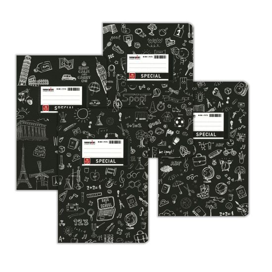 Special Χρωματιστό Τετράδιο 50 φύλλων, διάστασης B5 (17x25). Το εξώφυλλο είναι χρωματιστό με σχέδια για να ξεχωρίζει το καθε μάθημα εύκολα. Τα φύλλα είναι από εξαιρετικής ποιότητας χαρτί 70γρ. και η γραμμογράφηση είναι ριγέ με σωστές αποστάσεις. Έχει στρογγυλεμένες γωνίες Προεκτυπωμένη ετικέτα 2 όψεων σε ματ χαρτί η οποία βγαίνει εύκολα χάρη στην εγκοπή. Διατίθεται σε 12 χρώματα (μαύρο, κόκκινο, πράσινο, μωβ, κίτρινο, πορτοκαλί, λαχανί, φούξια, γαλάζιο, βεραμάν, μπορντώ, λευκό), σε πακέτο των 6 τεμαχίων.
