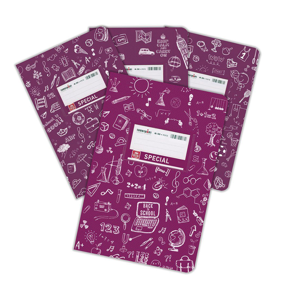 Special Χρωματιστό Τετράδιο 50 φύλλων, διάστασης B5 (17x25). Το εξώφυλλο είναι χρωματιστό με σχέδια για να ξεχωρίζει το καθε μάθημα εύκολα. Τα φύλλα είναι από εξαιρετικής ποιότητας χαρτί 70γρ. και η γραμμογράφηση είναι ριγέ με σωστές αποστάσεις. Έχει στρογγυλεμένες γωνίες Προεκτυπωμένη ετικέτα 2 όψεων σε ματ χαρτί η οποία βγαίνει εύκολα χάρη στην εγκοπή. Διατίθεται σε 12 χρώματα (μαύρο, κόκκινο, πράσινο, μωβ, κίτρινο, πορτοκαλί, λαχανί, φούξια, γαλάζιο, βεραμάν, μπορντώ, λευκό), σε πακέτο των 6 τεμαχίων.