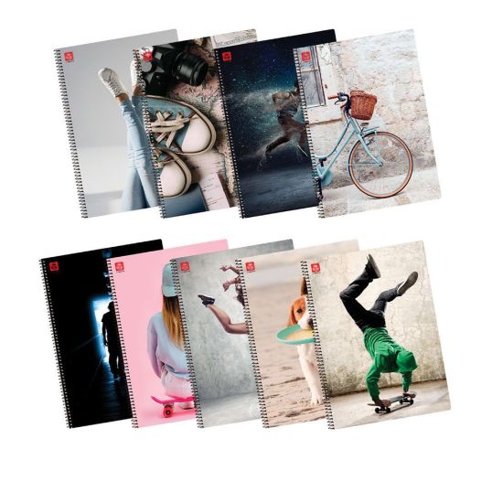 Τετράδιο σπιράλ 4 θεμάτων A4 (21x29,7). Με εξώφυλλο paperboard 350gr. και με σκληρό οπισθόφυλλο για να μπορείς να γράφεις σταθερά. Τα φύλλα είναι από εξαιρετικής ποιότητας χαρτί 70γρ. και η γραμμογράφηση είναι ριγέ. Είναι 4 θεμάτων, με διαχωριστικό για μεγαλύτερη ευκολία. Διατίθεται σε 9 σχέδια, σύμφωνα με τις απαιτήσεις και τις τάσεις της αγοράς. Η συσκευασία είναι ανάμεικτων σχεδίων (τυχαία επιλογή) σε πακέτο των 8τεμ.