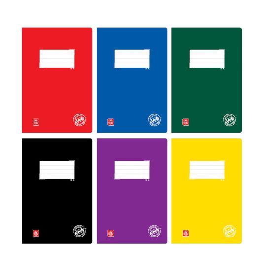 Χάρτινο τετράδιο B5 (17x25). Με χρωματιστό εξώφυλλο πλαστικοποιημένο 250 γρ. Τα φύλλα είναι από εξαιρετικής ποιότητας χαρτί 70γρ. και η γραμμογράφηση είναι ριγέ με σωστές αποστάσεις. Διατίθεται σε 5 χρώματα (μαύρο, κόκκινο, μπλε, πράσινο, μωβ, κίτρινο). Η συσκευασία είναι ανάμεικτων χρωμάτων σε πακέτο των 12 τεμαχίων.