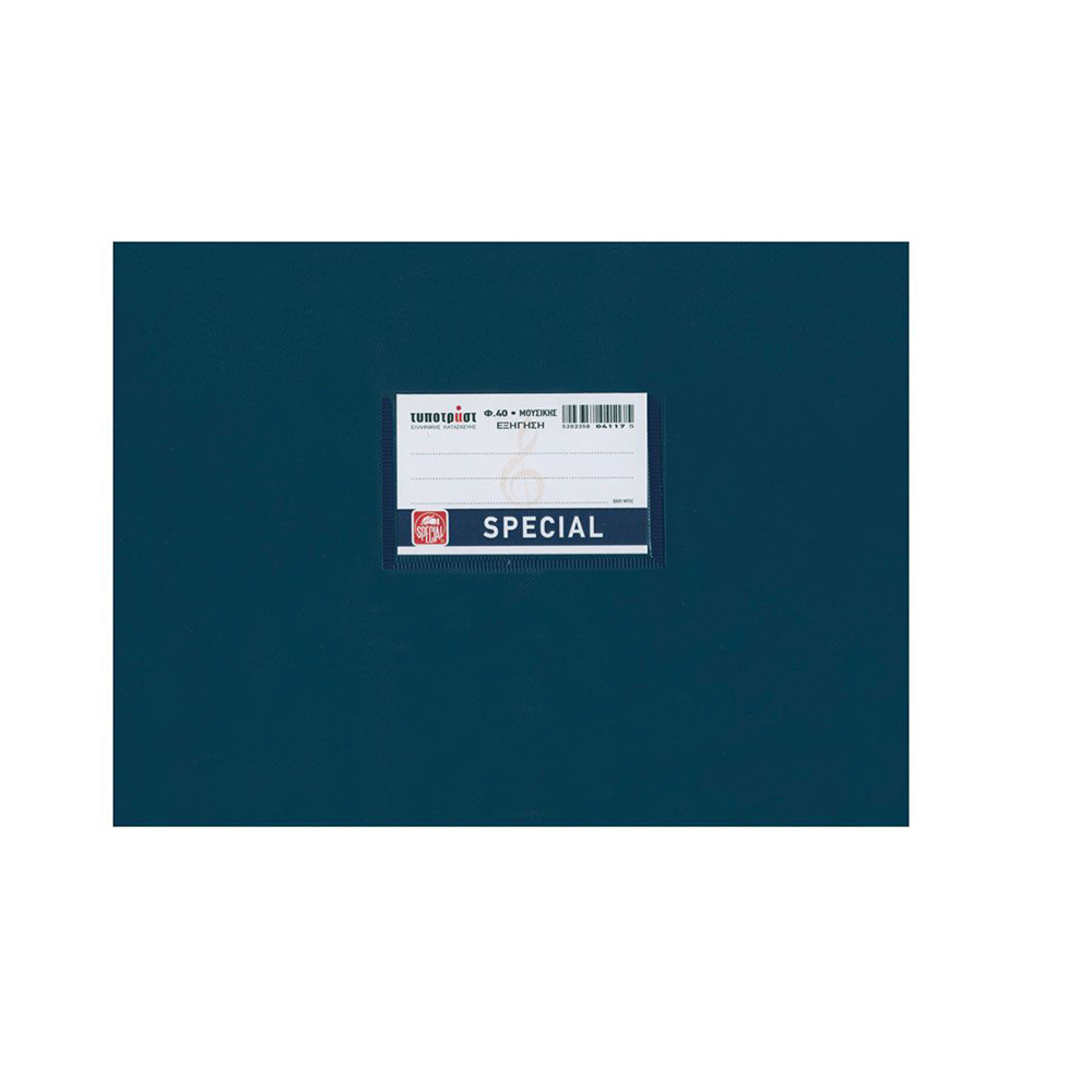 Κλασικό Τετράδιo μουσικής με εύκαμπτη θήκη περαστή σε σκούρο μπλε χρώμα. Διάσταση 17x25 πλάγιo, καρφίτσα, 40 φύλλων, με 70gr χαρτί. Η γραμμογράφηση είναι 6 Πενταγράμμων. Διατίθεται σε πακέτο των 12 τεμαχίων. Απαραίτητο για όποιον ασχολείται με τη μουσική!