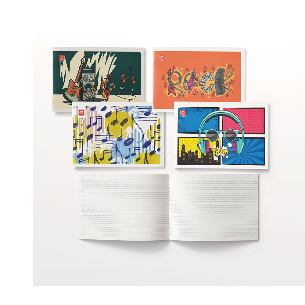Τετράδιo μουσικής με σχέδια για τους μικρούς δημιουργούς! Εξώφυλλο χάρτινο πλαστικοποιημένο. Διάσταση 17x25 πλάγιo, καρφίτσα, 40 φύλλων, με 70gr χαρτί. Η γραμμογράφηση είναι 5 Πενταγράμμων. Η συσκευασία είναι ανάμεικτων σχεδίων σε πακέτο των 12τεμ.