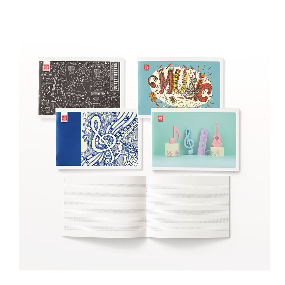 Τετράδιo μουσικής με σχέδια για τους μικρούς δημιουργούς! Εξώφυλλο χάρτινο πλαστικοποιημένο. Διάσταση 17x25 πλάγιo, καρφίτσα, 40 φύλλων, με 70gr χαρτί. Η γραμμογράφηση είναι 5 Πενταγράμμων. Η συσκευασία είναι ανάμεικτων σχεδίων σε πακέτο των 12τεμ.