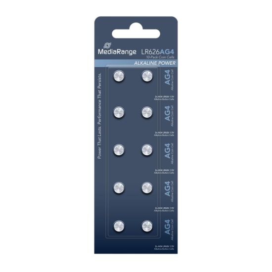 MediaRange Premium Αλκαλικές Μπαταρίες Κουμπί, AG4 | LR626 | 1.5V, Συσκευασία 10 τεμαχίων Οι premium αλκαλικές μπαταρίες κουμπί της MediaRange είναι ιδανικές για μικρές συσκευές με υψηλή κατανάλωση ενέργειας και συνεχή χρήση. Η προηγμένη αλκαλική τεχνολογία προσφέρει μέγιστη ποιότητα και σταθερή παροχή ενέργειας. ΧΑΡΑΚΤΗΡΙΣΤΙΚΑ Τύπος: Αλκαλική LR626 Μέγεθος: AG4 Διαστάσεις: Ø6,8 x 2,6 mm Τάση: 1.5V Περιεκτικότητα σε βαρέα μέταλλα: 0% κάδμιο και υδράργυρος Συσκευασία: 10 τεμάχια Τεχνολογία: Σύγχρονη αλκαλική Παροχή ενέργειας: Συνεχής Διάρκεια ζωής: Μακράς διάρκειας Αξιοπιστία: Εξαιρετική