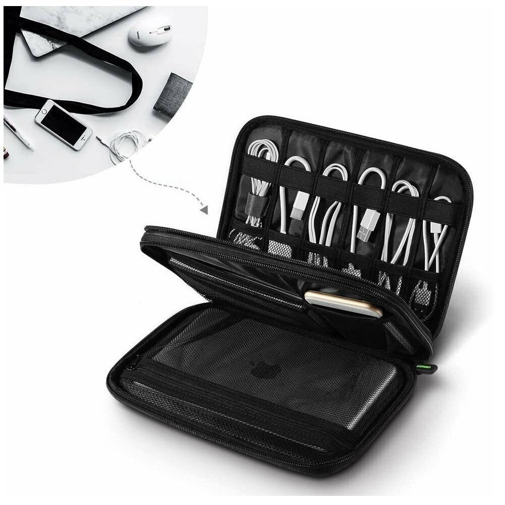 Η θήκη μεταφοράς Ugreen Travel σας προσφέρει μια καλύτερη λύση για να τοποθετήσετε τέλεια όλα τα ηλεκτρονικά σας αξεσουάρ. Δύο θήκες μεγάλης χωρητικότητας Πρώτη θήκη: 12 ελαστικές θήκες για μικρά αντικείμενα όπως καλώδιο usb, ακουστικά, μονάδα flash, κάρτα sd, δρομολογητής ταξιδιού 1 τσέπη ματιών με φερμουάρ για τροφοδοτικό, μικρό power bank, MP3 player κ.λπ. Δεύτερη θήκη: Τσέπη 2 θηκών για ποντίκι, τηλέφωνο, εξωτερική μπαταρία, τροφοδοτικό κ.λπ. Τσέπη 1 ματιών με φερμουάρ για tablet, όπως το iPad Mini. Το μέγεθος του tablet πρέπει να είναι μικρότερο από 7,9 ίντσες