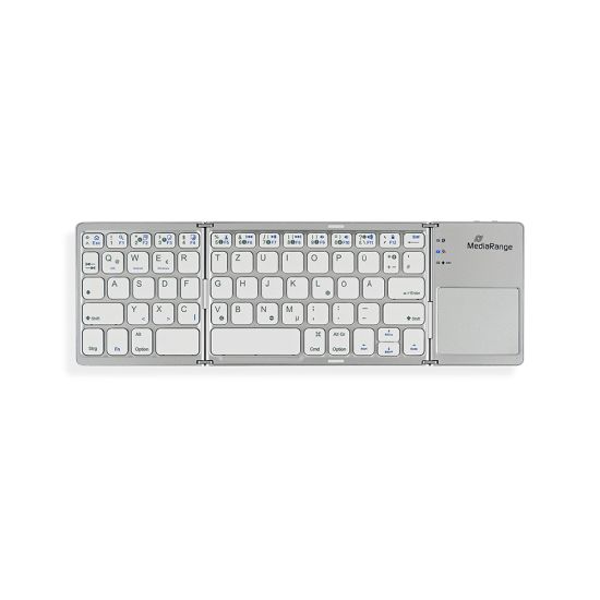 MediaRange Πτυσσόμενο Ασύρματο Πληκτρολόγιο με 63 Πλήκτρα και Touchpad, Διάταξη QWERTY (GR), Ασημί Ακρίβεια και Άνεση για Κάθε Εργασιακό Χώρο Οι συσκευές εισόδου της MediaRange είναι ιδανικές για κάθε εφαρμογή στο γραφείο ή στο σπίτι. Το συμπαγές ασύρματο πληκτρολόγιο συνδέεται γρήγορα και εύκολα με smartphones, tablets και άλλες συσκευές με δυνατότητα Bluetooth. Με διάρκεια ζωής άνω των 10 εκατομμυρίων πατημάτων και προστασία από πιτσιλιές, τα πληκτρολόγιά μας είναι άριστα προστατευμένα από τη φθορά της καθημερινής χρήσης. ΧΑΡΑΚΤΗΡΙΣΤΙΚΑ Πτυσσόμενο ασύρματο πληκτρολόγιο για συσκευές με δυνατότητα Bluetooth® Διάταξη πληκτρολογίου: QWERTY (GR) Με touchpad για εύκολη πλοήγηση Πλήκτρα λειτουργιών για άμεση πρόσβαση σε εφαρμογές Ενσωματωμένη μπαταρία λιθίου-πολυμερούς: 140mAh | 3.7V | 0.518Wh Επαναφορτιζόμενο μέσω θύρας micro USB: DC 5.0V / 0.5A Έως 20 ώρες λειτουργίας | Έως 120 ημέρες σε αναμονή Σύνδεση: Bluetooth έκδοση 3.0 Εύρος συχνοτήτων: 2402 - 2480 MHz Απόσταση μετάδοσης: έως 10m, Class 2 Περιλαμβάνεται καλώδιο USB-A σε micro USB μήκους ± 50cm Χρώμα: Ασημί Διαστάσεις και βάρος: 304 x 97 x 12 mm, ± 200g