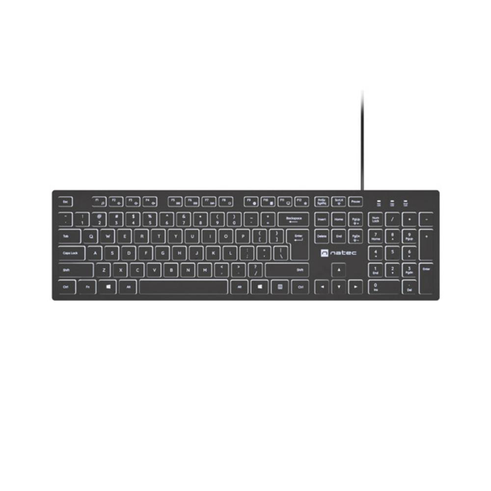 ο Natec Herring Glow είναι ένα πληκτρολόγιο σχεδιασμένο για καθημερινή χρήση στο γραφείο και στο σπίτι. Συνδυάζει κομψό, λεπτό σχεδιασμό με λειτουργικότητα που σας επιτρέπει να πληκτρολογείτε πιο γρήγορα, πιο αθόρυβα και πιο άνετα. Είναι ιδανικό για όσους εκτιμούν την άνεση, την αισθητική και την μακροχρόνια αξιοπιστία. Η αθόρυβη και ομαλή λειτουργία των πλήκτρων σας επιτρέπει να συγκεντρώνεστε πλήρως στις υποχρεώσεις σας χωρίς περιττό θόρυβο και ενοχλητικούς ήχους. Τα λεπτά πλήκτρα τύπου Chiclet, εμπνευσμένα από τον σχεδιασμό των laptop, εγγυώνται ελαφριά και ακριβή πληκτρολόγηση, ενώ η πλήρους μεγέθους διάταξη εξασφαλίζει ότι όλες οι λειτουργίες είναι πάντα στη διάθεσή σας. Επιπλέον, η ανθεκτική επίστρωση UV προστατεύει τις εκτυπώσεις από τη φθορά, διατηρώντας τα γράμματα ευανάγνωστα για χρόνια έντονης χρήσης.Λευκός φωτισμός πληκτρολογίου